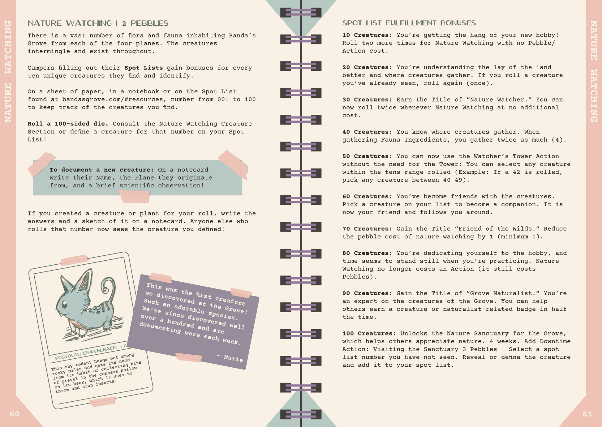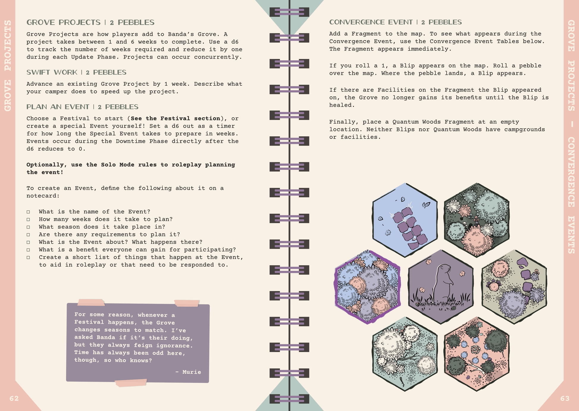 - Lore, But Room For More - All players are encouraged to add their own lore and details to the Grove by spending a Pebble. Each playgroup's Grove is unique!