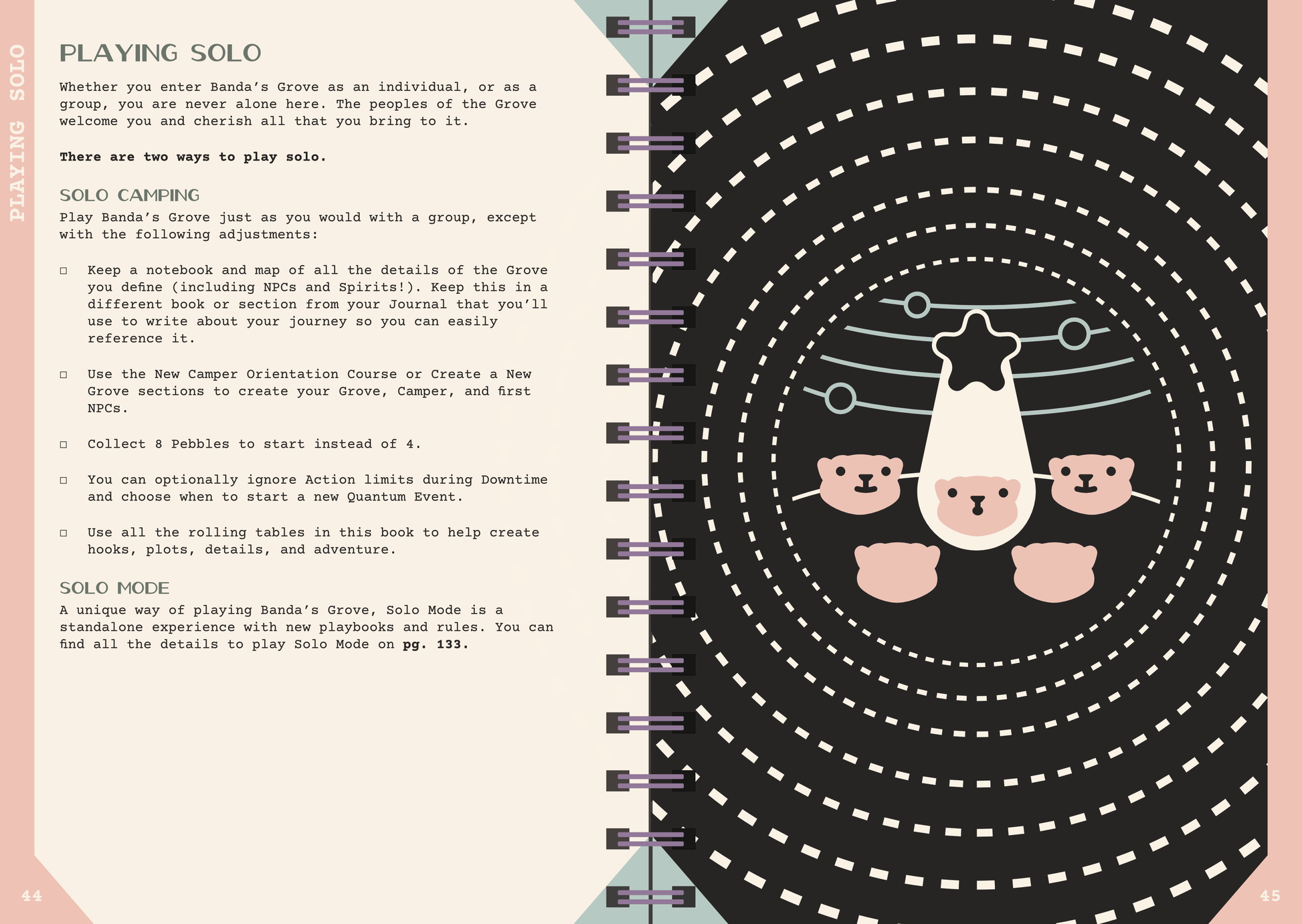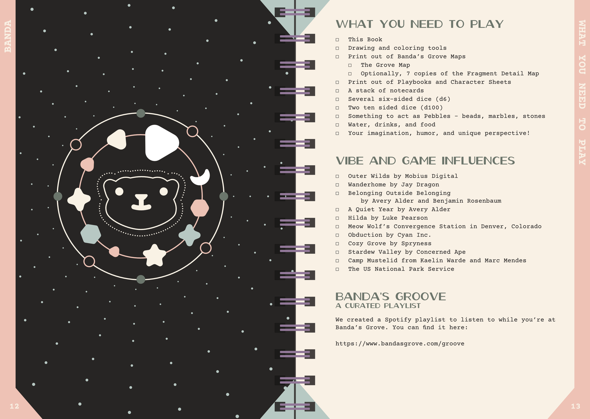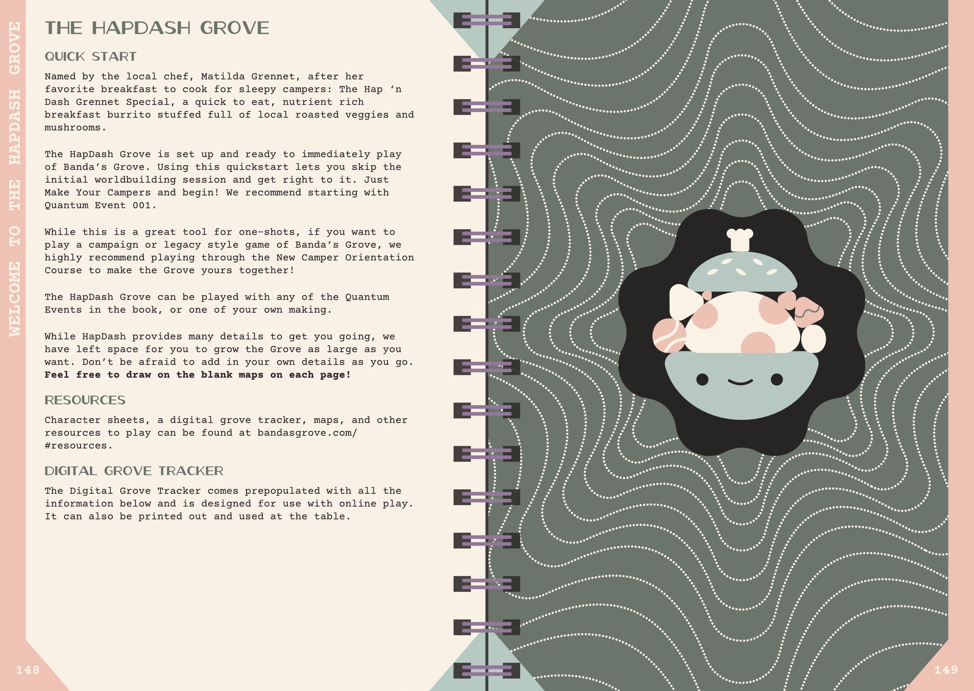 Banda’s Grove is a diceless, cozy, slice of life RPG with hex map mechanics for 1-6 players plus a facilitator. A community-building game of discovery, quasi-magical quantum science, whimsy, and wonder!