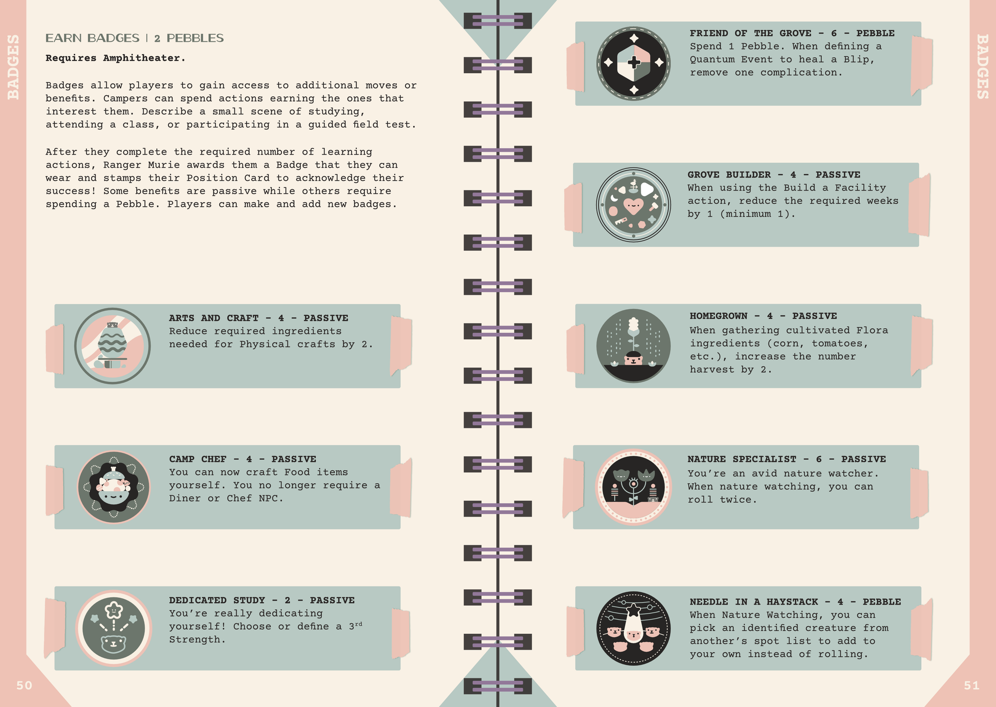 - Badges to earn - Permanently add new actions or bonuses to your Camper!