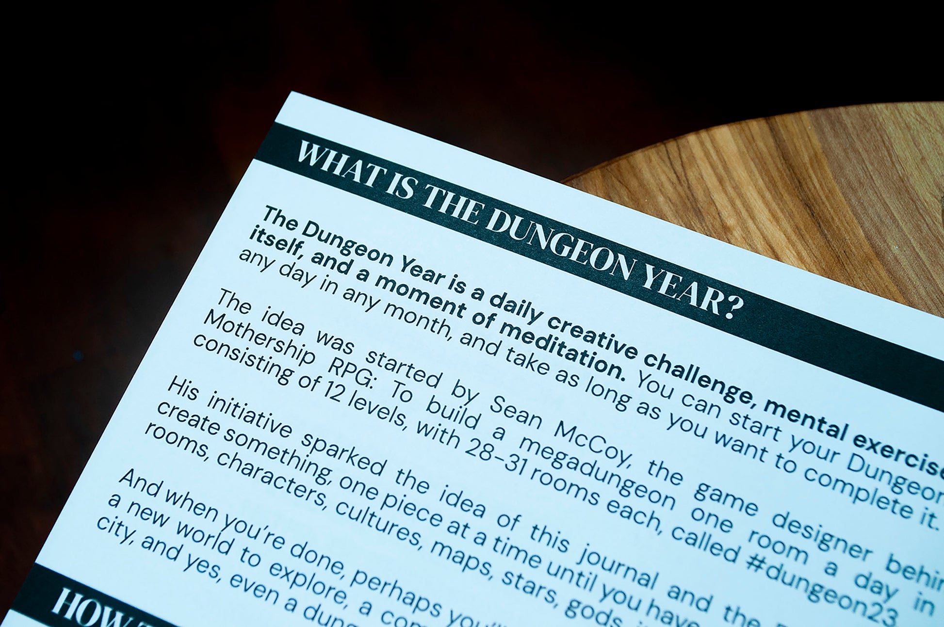The Dungeon Year is a daily creative challenge, mental exercise, a game itself, and a moment of meditation. You can start your Dungeon Year on any day in any month, and take as long as you want to complete it.
