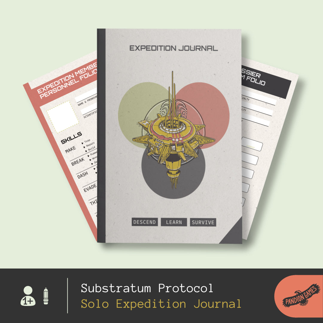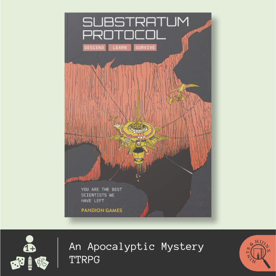 - Substratum Protocol - 1+ Players - When the anomaly appeared at the Earth's core, the Substratum Protocol was initiated. You are the best and brightest scientists we have left, our last hope to stem the apocalypse. You are the Substratum Expedition Team. On their grueling journey to the center of the Earth, members of the Substratum Expedition will overcome challenges, gain clues and knowledge of the anomaly, discover creatures, aliens, cosmic horrors, and ultimately assemble their final hypothesis to overcome the apocalypse looming before them. Descend. Learn. Survive. - Includes Soloist Journal with Player and Team character sheet.
