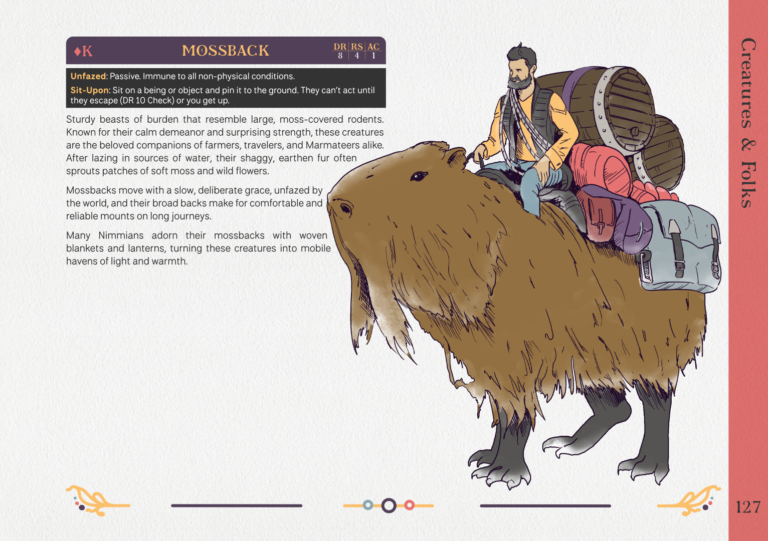 - A compendium of 52 creatures and folk containing stat blocks, abilities, and descriptions.