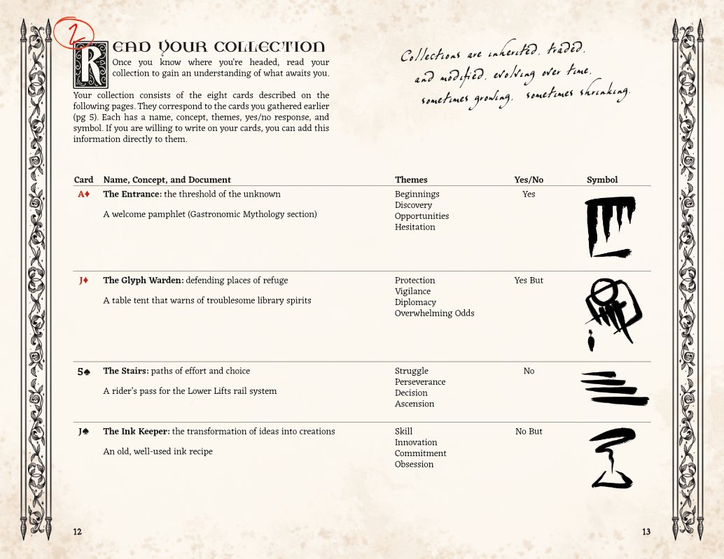 - Craft a ritual for reading your Collection and use it to flavor your experiences.