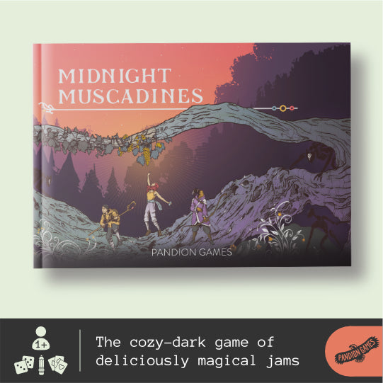 Midnight Muscadines is a solo+ TTRPG using dice and playing cards to explore a world with a shattered sun, survive the shadows that lurk, and craft deliciously powerful jams to keep the magic alive. It can be played solo, duet, GM-less, or with a traditional GM.